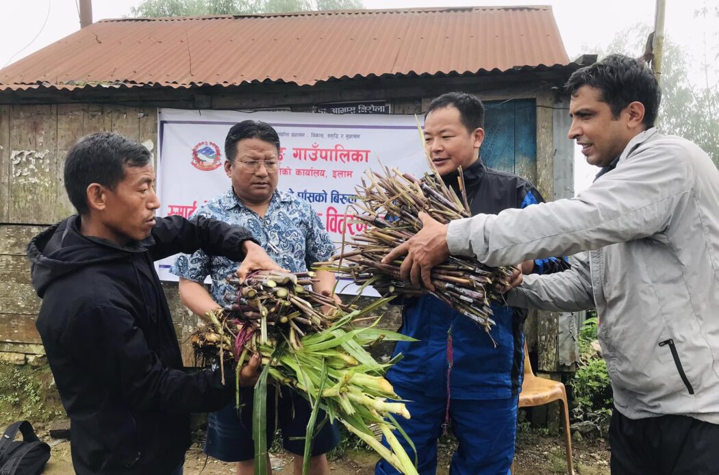 घाँसको बिरुवा वितरण गर्नुहुदै गाउँपालिका अध्यक्ष हेमन्त राई, उपाध्यक्ष विनोद नेम्बाङ, प्रमुख प्रसासकीय अधिकृत विनोद चौहान, वडाध्यक्ष जनम खम्बु, आर्थिक विकास समिति संयोजक सुसन रुङमाहाङ, प्रशु चिकित्सक मनोज ठगुन्ना, पशु प्राविधिक भेषराज भट्टराई, प्रविण मुखिया लगायतले घाँसको सेट वितरण गरेका थिए ।