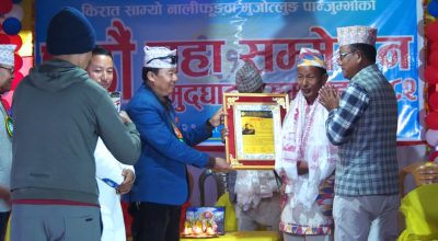 माङगेन्ना सेवाका अध्यक्ष केहेरसिं योङहाङलाई अभिनन्दन गरिंदै।